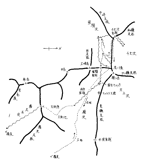 | 北ア南部 槍ケ岳周辺滑降 1984年5月3日〜6日 メンバー:L石垣隆宜、佐藤晶彦 今回滑降したルートは、すべてガイドに紹介されているものだったが、シュプールが見られたのは、槍沢と飛騨沢だけで、千丈沢、横尾右俣には見られず、誰にも会うことなく広大な斜面を占領して、スケールの大きな山スキーを楽しむことができた。 5月3日 曇りのち晴れ 前夜、室堂へ入る猿田さんパーティーのワゴン車に便乗して松本まで入る。駅で仮眠後タクシーで上高地へ。昨日雪が降ったらしく、回りの景色は新雪の山のようだ。朝食後、ザックにスキーを付けて出発、長いアプローチが始まった。さすがに人が多く、回りのペースに引きずられて、横尾までハイペースで歩く。雪解けで道はあまり良くない。 ほとんどの人が涸沢方面へ入るので、横尾を過ぎるとぐっと静かになる。 横尾から30分位の所からスキーをつける。やっとスキーの重さから解放され、1日目は赤沢岩小屋そばにツエルトを張る。 【コースタイム】 上高地 7:15 −> 横尾 10:40/11:10 −> 赤沢岩小屋 15:30 5月4日 快晴 今日は槍登頂の日だが、風邪ぎみで体調が悪い。早朝の雪面は堅くスキーアイゼンがよく効く。大曲を過ぎると槍沢の大斜面が望まれ、大喰岳からの斜面は出だしが急だが快適そうだ。急登にかかるころから調子が悪くなる。無風快晴の槍沢は雪の砂漠と化し、坊主岩付近ですっかりバテてしまう。休んでいる間、石垣さんに滑ってきてもらう。そこからは、休むたびに雪でかき氷を作ってもらい、やっとの思いで肩に着く。私にとって初めての槍ケ岳山頂は、期待にそぐわぬ大展望、黒部五郎、薬師、立山など滑ってみたい斜面ばかりだ。天上沢へはどこから降りたらよいのか全く見当がつかない。明日滑降予定の千丈沢を入念に観察して肩へ戻る。 飛騨沢へは飛騨乗越の方へ少し進んでから滑降する。重荷かつ疲れた体では、滑りを楽しむわけにはいかず、ただ下るだけだ。標高2550m付近にツエルトを張る。 【コースタイム】 赤沢岩小屋 6:35 −> 肩の小屋 13:25 −> 槍ケ岳 14:10/30 −> 飛騨沢 15:50 5月5日 快晴 2650mまで登り荷物をデポ、まずは1本空身で朝の堅い斜面を快適に滑る。2本目は中崎尾根まで登って滑る。 いよいよ千丈沢滑降、西鎌尾根を目指す。尾根直下の急斜面はツボ足で登り、2800m付近に出た後、千丈沢乗越まではスキーを手に持って歩く。岩が出ているため、千丈沢乗越から直接沢へは入れず、少し双六よりからリフト1本分位滑降する。雪はすでに腐っており、そんなに難しい滑りではない。登り返してもう1本滑って休憩、右に槍の穂先、正面に立山、後立の山々を眺めながらのコーヒーの味は最高!! 再び千丈沢乗越まで登り返し、西鎌尾根を2900mまで登る。尾根上から千丈沢に刻んだ4本のシュプールが眺められ、この角度からだと私のシュプールもなかなか格好よく、勝手に自己満足。今度は飛騨沢滑降。広い斜面はどこを滑ろうか選択に迷う。雪は少し引っかかるようになるが、どうにかターンしてデポ地まで滑る。 少し遊びすぎたせいか、飛騨乗越への登りで昨日以上にバテてしまい、乗越に着く頃にはフラフラだった。それでも気を引き締めてスキーをはく。槍沢の下りは、最初は所々岩の出た狭い急斜面、横滑りで行くしかない。広くなってからもクラストした斜面は、エッジングすると割れてしまういやな雪で、表面をなでるように斜滑降、キックターンの繰り返しで一度もターンできずに殺生ヒュッテに降りる。疲れ果ててツエルトを張るにも一苦労、ほとんど石垣さんにやってもらう。 【コースタイム】 飛騨沢滑降 7:50/9:50 −> 西鎌尾根(2800m)10:55 −> 千丈沢滑降 11:45/13:00 −> 西鎌尾根(2900m)13:45 −> 飛騨乗越 16:05/20 −> 殺生ヒュッテ 16:40 5月6日 快晴 薬師岳、黒部五郎岳、三俣蓮華岳と滑ってきた今年の僕らのゴールデンウイークも今 今日は最初から下りだ。槍沢は足跡とシュプールだらけなので、きれいな斜面を選んで滑る。2日目に苦労した斜面も滑り降りればアッという間だ。途中から天狗原入口を目指して急斜面を大斜滑降。晴れているからよいものの、ガスっていたらどこが天狗原への取り付きかわからないだろう。ダケカンバが数本はえている急斜面で慎重にシールを付ける。天狗池を過ぎると緩やかになり、この周辺で滑って遊ぶのも楽しそうだ。シュプールが1本だけあった。 コルまではわずかな登りだったが、疲労のたまった身体には少しこたえた。しかし、もう登りがなく滑るだけだと思うとたちまち元気になってしまう。3日間眺めてきた槍ともお別れだ。横尾右俣はきれいな斜面で、誰にも荒らされていない。上部は急だが、雪質はちょうど良く、快適に滑る。空身だったらもっと積極的に飛ばしていきたいところだ。左俣との出合が近くなると、デブリが出はじめて滑りにくくなる。涸沢の出合で小休止し、あとはひたすら横尾を目指す。今年は雪が多かったため、梓川に出るまでスキーを使うことができた。前穂