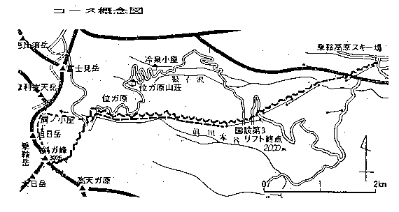 | 北ア南部 乗鞍スキー場より往復 1989年4月2日 M:L西川克之、加藤康男、柴崎松夫、岡坂準一 3月5日に西川氏、柴崎氏の3人で乗鞍岳を目指したが、悪天のため位ヶ原までしか行けなかった。今回は天候にめぐまれ、乗鞍山頂から標高差1500mの大滑降を楽しむことができた。 4月1日(土) PM2時、荻窪駅にてメンバーの西川氏、加藤氏、柴崎氏の3人と待ち合わせ、車で出発する。今シーズンの私の山行は、全て車利用である。乗鞍岳へ行くには、時間的にも経済的にも車が有利と思う。4人乗車で車を利用すると、交通費は往復1人4000円程度である。 19時に民宿かねき屋に着いた。夕食の後、明日の好天に期待して、全員早々と21時頃眠ったが、寝る前に加藤氏の行動食を見て全員ビックリ、なんとおにぎり10個である。最近の加藤氏のパワーが少し理解できた。 4月2日(日) 快晴 この宿はスキー場より3K程離れているため、車で宿を8時少し前にでる。リフトを4本乗り継ぎ、第3リフト終点を9時20分に出発した。快晴でポピュラーなルートのため登山者が多い。 山頂までゆっくりと休まず登ろうと思いながら、私が先頭でゆっくりシール登行する。位ヶ原までは樹林帯の切り開きの中を約1時間の登りである。西川氏の説明では、乗鞍山頂へのルートは2つあり、1つは従来からのルートの肩の小屋経由のもの、もう1つは前川本谷沿いに登り、大日岳と剣が峰のコルまでシール登行して山頂をめざす、2つのルートがあるとのこと。後者の方が時間的にも距離的にも短いとのことであるが、今日はクラシックルートの肩の小屋経由とする。 位ヶ原からは、木立のない緩い大斜面となる。風が強い。位ヶ原からも休むことなく、ゆっくり約1時間で肩の小屋に着いた。少し休憩しようとも思ったが、風が強いので、アイゼンを付けたり、オーバーズボンをはいたりしているのが、休憩がわりとなり、特別休むことなく、アイゼン登行45分で乗鞍山頂、剣が峰3026mに着いた。 山頂で持参してきたビデオを回す。御岳、穂高連峰の展望をビデオにおさめる。ガイドブックでは山頂よりの滑降は無理なように記されているようだが、東面は風当たりも強くなく、アイスバーンではないので、山頂よりスキー滑降と決める。 山頂より東面に少し滑り降り、高天ケ原のコルまで滑る。コルより前川本谷に続く沢に入る。ビデオを撮影しながらの滑りである。ここは雪質もよく滑りが楽しめた。全員を交互にビデオに撮る。 標高2500mあたりから北へトラバースして位ヶ原に戻る。位ヶ原下部の急斜面を過ぎると、雪質が悪い。今年は雪が少ないようだが、それでもゲレンデ下部まで滑降することができ14時に出発地点に戻りツアーを終えた。 (岡坂記) 【コースタイム】 リフト終点 9:20 −> 肩の小屋 11:10/30 −> 山頂 12:20/45 −> 最終リフト 13:40 −> 出発点 13:55 【概念図】 ![]() |