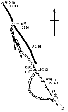 | 北ア南部 御岳高原スキー場より 1985年3月2日〜3日 M:L西川克之、今野桂子、蔵田道子、手塚紀恵子 3月2日 晴れ 御岳スキー場のリフトを乗り継ぐと、三笠山山頂近くまで行けてしまう。しかし、このスキー場のリフトは、登山者は乗せないと言うことで原則としては当てに出来ない。 (私たちは、頼み込んで何とか乗せてもらった。ごね得と言うべきか?)三笠山から一滑りで田の原到着。避難小屋を探して暫くウロウロする。ようやく探し当てた小屋と言うのは、「御岳山荘」の地下室ならぬ、単なるただの床下!コンクリートの柱むき出しの床下には朽ちかけた戸板のようなものは一応ひいてあり、立ち込めるかび臭さに暗ーい気持ちになってしまうも、気を取り直してその中にツエルトを張る。その後、夏道沿いに8合目まで試登。上部は風も強く雪も硬かったが、結構吹き溜まりや沢状のところを見つけて下り、なかなか快適な滑りを楽しんだ。 3月3日 晴れ 晴天ながら、すごい突風が吹いており前途多難。樹林帯を抜けるとカチンカチンの斜面になるが、8合目辺りから左へトラバースしてルンゼ状の所に入ると、雪も多少は柔らかく、突風にたたかれながら高度を稼いでいく。そのルンゼが切れる辺りで更に左手のルンゼに入ると、頂上宿舎はすぐ目の前に見えるが、突風に耐風姿勢で止まっている時間の方が長く、四苦八苦。ようやく宿舎の陰に隠れて、ほっと一息ついて、最初の一声は、「では、下りましょうか。」だった。こんな所は一刻も早く、と草々に下りだす。 頂上直下のカチカチの部分は、横滑りで慎重にこなし、ルンゼの中に入ると一安心。このルンゼの中は少々重い雪ながら結構楽しめ、どんどん高度を下げる。ルンゼを出ると堅斜面、密な樹林帯、田の原の緩斜面と変化に富んだ滑りを満喫して帰る。 (手塚記) 【コースタイム】 3/2 リフト終点 11:00 −> 田の原 11:30/12:17 −> 8合目 13:20/13:40 −> 田の原14:10 3/3 田の原 7:40 −> 王滝山頂 10:35/10:55 −> 田の原 12:05 【概念図】 ![]() |
