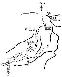 | 加賀/別当出合より 1984年6月2日〜3日 L西川克之、今野桂子、石垣隆宜 6月2日 晴 前夜上野発の急行、金沢駅から野町駅までタクシー、北陸鉄道の終点白山下から日に一本のバスとのりついで別当出合に着いた。駐車場は人ごみにうめつくされ、だれもスキーなど持っていない。雪も全く見えない。 仕方ない。板をザックに着け夏山縦走から始める。吊橋をわたって砂防新道に入る。中飯場付近から雪があらわれ楽になった。緩い尾根を登り続けて甚之助ヒュッテに着いた。そこから一登りし左にトラバースして、沢状の急斜面を登りきると黒ボコ岩がある。正面に弥陀ケ原が広がり白山御前峰が臨まれる。頂上付近は雪がない。室堂センターのわきに荷物をデポし頂上へ向かう。左よりに登って雪渓の上端のコルに板をデポし、右に稜線を15分で頂上。コルからは2〜3分すべると室堂。この日はセンターに泊まった。 6月3日 晴 朝は曇っていたが、再度同じルートで頂上に立つ。今度は雲海の上に北ア全山から御岳、八ケ岳、北岳、赤石まで確認できた。まだ白い北アルプスの山波の中で槍と釼だけは黒くとがっていて目立つ。 あとは大滑降あるのみだが、まっすぐ下ると早く着きすぎてしまうので甚之助ヒュッテで大休止。ヒュッテを発ってまもなくだれか呼ぶ声がする。見ると石垣さんがいてびっくり。1日の夜行に乗れずきょうきたそうだ。すれちがって石垣さんは登りつづける。下部は足跡の穴だらけですべりにくいが、雪がある限りはと凹凸の大波がうつ上をすべりつづけ、最後はまた板をかついで別当出合まで戻った。石垣さんはバスが出発するまでのわずかな時間で弥陀ケ原まで行ってきたそうだ。バスで金沢に出、長岡経由新幹線で帰京した。 (西川記) 【コースタイム】 6月2日 別当出合 9:35 −> 中飯場 10:20/10:45 −> 甚之助ヒュッテ 12:00/12:10 −> 弥陀ケ原 13:45/14:05 −> 室堂 14:35/14:55 −> 白山 15:45/16:05 −> 室堂 16:30 6月3日 室堂 7:35 −> 白山 8:10/8:40 −> 室堂 8:55/9:10 −> 甚之助ヒュッテ 9:35/10:35 中飯場 10:55 別当出合 11:35 【概念図】 ![]() |