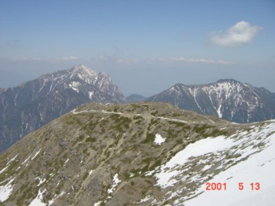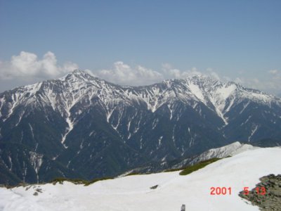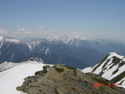 それにしてもいい天気だ。甲斐駒、北岳と間ノ岳、塩見と赤石がよく見える。