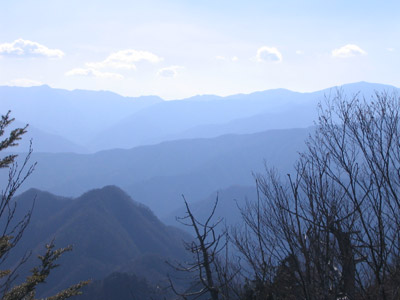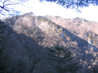 | 2004年11月22日 メンバー:作野 11月22日(快晴無風の小春日和) 冬の山スキーのための体力作りに両神山に行ってきました。 朝6時高島平を出て、関越・花園インターから長瀞を経て日向大谷まで約2.5時間でした。駐車場は小さいので、上はもう満車。第2駐車場は空いていたので、そこに止めて朝食。8時45分頃出発。下は紅葉が綺麗でした。 ![]() 清滝小屋10:20着。10分休んで10:30同所発。両神(イザナギ、イザナミの命を祀っている。)神社に11:10着。11:15に同所を出て頂上11:42頃到着。天気が良く風も無く、まわりが良く見渡せるが、案内板にあるとおりの上州の山は丁度木陰で見えず、また八ヶ岳・南アルプスはどれがそれか良くわからなかった。期待した富士山も最初わからなかったが、隣にいた人にあそこに見えますよと教えられて、目を凝らすと雲取山の少し右側にうっすらと白い三角錐の山影が見えた。 ![]() さすがに百名山だけあって平日なので中高年が多い。(若い人も3人位いたが。) 登りは結構きつく、従って帰りも急で脚の疲れを感じた。 ![]() 下りは、12時に頂上発で、清滝小屋に12:50着、同所13:00発で日向大谷着14:10でした。 作野記 |