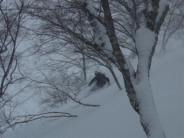 | 2005年2月20日 メンバー:L.梅原、長谷川、蔵田、鈴木、菅澤、斉藤 このとろ、この地方は悪天で、19日はガーラなどは強風でゴンドラ休止とのこと。 2月20日も悪天。松手山からだと風雪が辛そうなので、ヤカイ沢をつめて平標を目指す。標高1,300m辺りから沢を離れて右の尾根にとりつく。標高1,500mを越えると風雪が次第に強くなる。標高1,670m辺りで平標山の家から延びる主稜線から僅かに分かれた枝尾根にとび出した。悪天で視界はあまりなく、吹雪で凍えそうだった。非常に辛いので、この地点で往路を戻ることに。 樹林の中、当初はまずまず快適に滑るが、下るにつれ重い雪がひっかかる。ヤカイ沢に降りて緩斜面をトロトロ下り、登山道に至ればあっけなく国道の駐車場であった。 梅原秀一 記 |