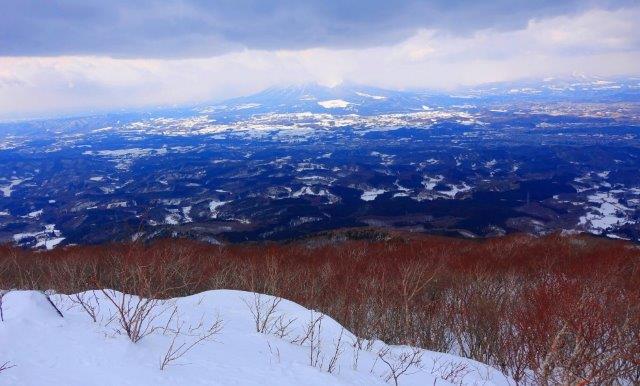 天候:曇 梅原(単独) 始発新幹線は盛岡8時13分着。IGRいわて銀河鉄道に乗りりかえて好摩に9時3分着。予約のタクシーで一本杉登山口へは約2,000円。線路沿いは疎らな残雪程度が、登山口では50p程の積雪であった。 姫神山は標高1,124mの低山の割には、周囲に高山が無いので目立つ。名前も魅力的なので、冬季でも大勢が登頂している。踏み固められたトレースは氷のように固い。 五合目までシールを効かせスイスイ快調に登るが、以降急傾斜にスキーアイゼンが氷のトレースに引っかからない。トレースを離れるとスキーは雪に沈み込んで、ラッセルは苦行となる。どうせ低山だ!ということで、ザックにスキーをフィックスして登った。樹木が密なのに加え滑るには最悪の雪質。果たしてどうなるか不安になってきた。 山頂が近づくと岩の露出と密な灌木となった。とても滑れたものではないので、山頂の標高差にして20mぐらい下にスキーをデポし登頂。生憎岩手山の上部は雲に覆われていたが、眼下の森の広がりは岩手の山で得られる雄大な眺めである。この後に直面しなくてならない苦行を暫し忘れ、展望を楽しんだ。 往路を滑降。というよりはスキーを使って下った記すべきだろう。トレースは狭い氷の滑り台。それを外すとスキーを雪に埋まりこませながら密林を下る。怪我をしないで良かった。帰宅して片方のスキーの底が破損しているにに気付いた。十年近く使っていうるので仕方なかろう。つい先日当てたナンバースWセットストレート当選金でスキー用具一揃い買い替えた。これが最後の買い物かもしれないので、豪勢にいった。 一本杉登山口9:45→五合目10:25→11:45姫神山12:05→五合目13:25→13:25一本杉登山口 写真/姫神山山頂から岩手山を望む