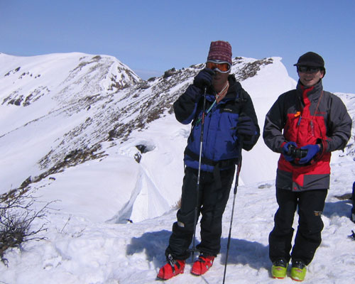 途中、1月16日の雪崩遭難現場を通る。注意書きの紙が木に貼られていた。一見なんでもないトラバースのように見えたが、雪崩れた跡は木々が無く、雪崩れやすいのだなと改めて思った。