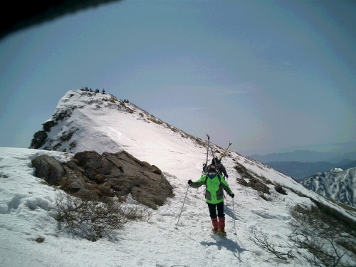 芝倉沢源頭部からノド部。この辺から雪が緩んできた。