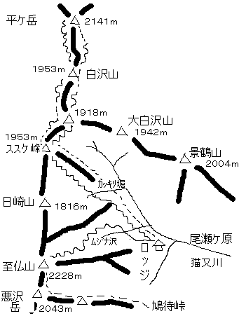 登りは全員バテバテの状態であった。それでも平ケ岳から3時間の行程である。ス